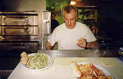 At Caffe Graziani, Giovanni, Paula ,and the whole family strive to extend a welcoming family feel at their restaurant. Located on Washington Street in downtown Salem, their business card logo features a child's drawing of the family with the slogan, "The Family Place". Their menu is pure home style Italian and plentiful, and their desserts are homemade.